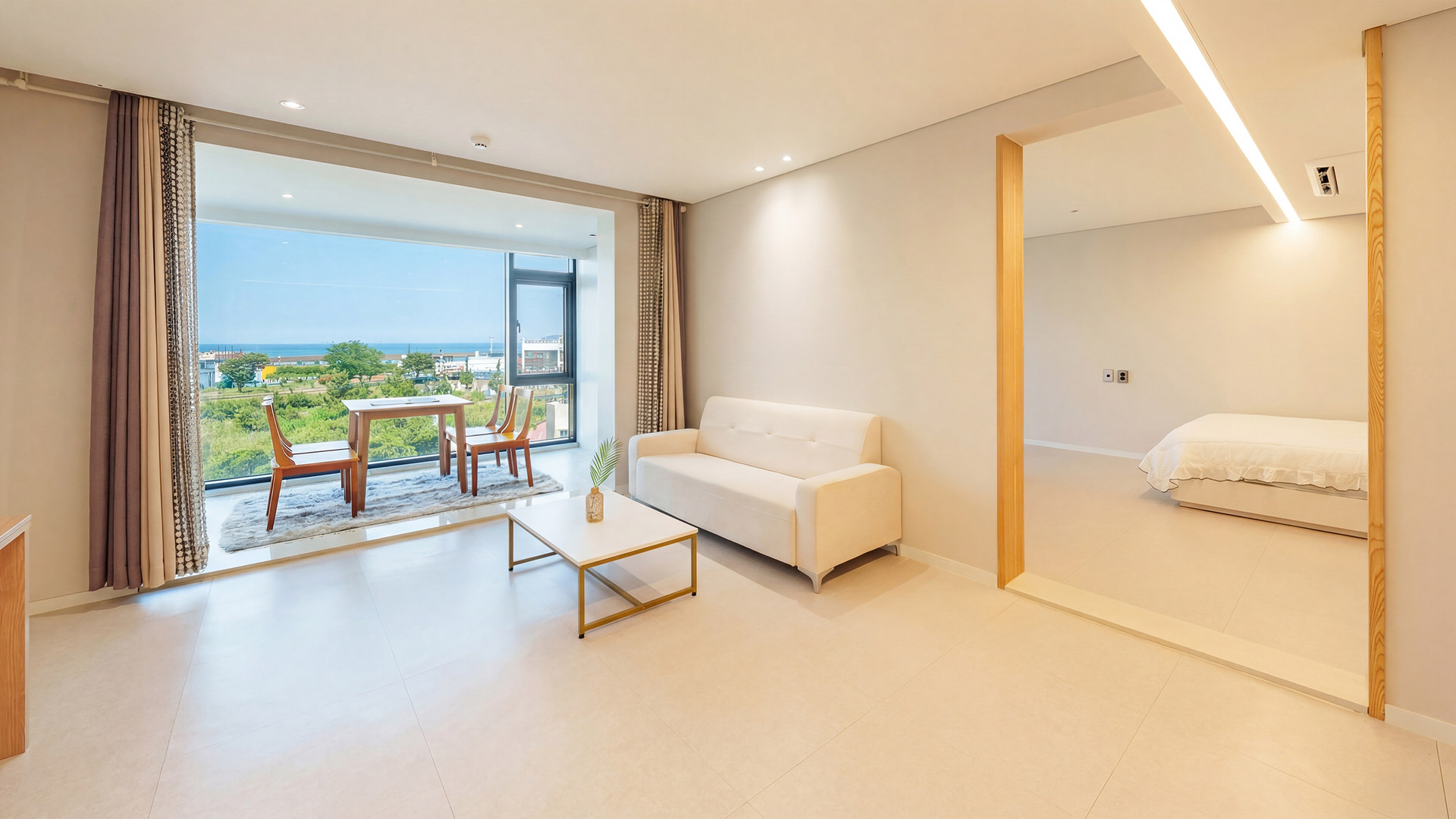 - 집기품목 : 욕실용품, 남녀공용, TV, 금연, 냉장고, 에어컨, 전기밥솥, 취사시설/도구, 식탁, 인덕션, 커피포트, 전자레인지, 샴푸, 바디워시, 린스, 바다전망
